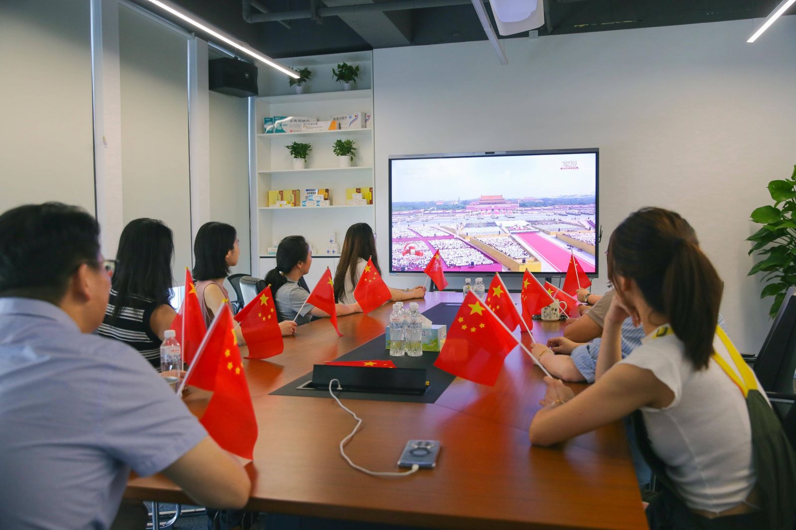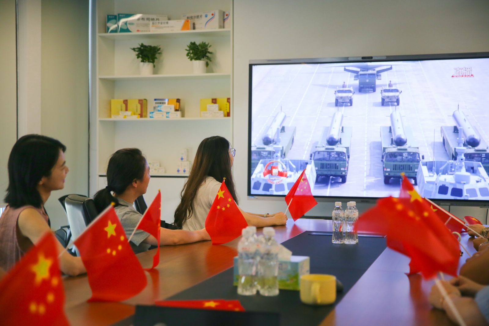 上午9時,公司會議室已座無虛席,現(xiàn)場洋溢著莊重而熱烈的氣氛。黨支部提前為大家準備了手持小國旗,同志們手持國旗,滿懷期待地等待儀式開始。當屏幕上出現(xiàn)雄偉的天安門廣場、威武雄壯的受閱部隊時,全場肅然起敬,所有人的目光都聚焦于展現(xiàn)國家實力與和平?jīng)Q心的歷史性時刻。