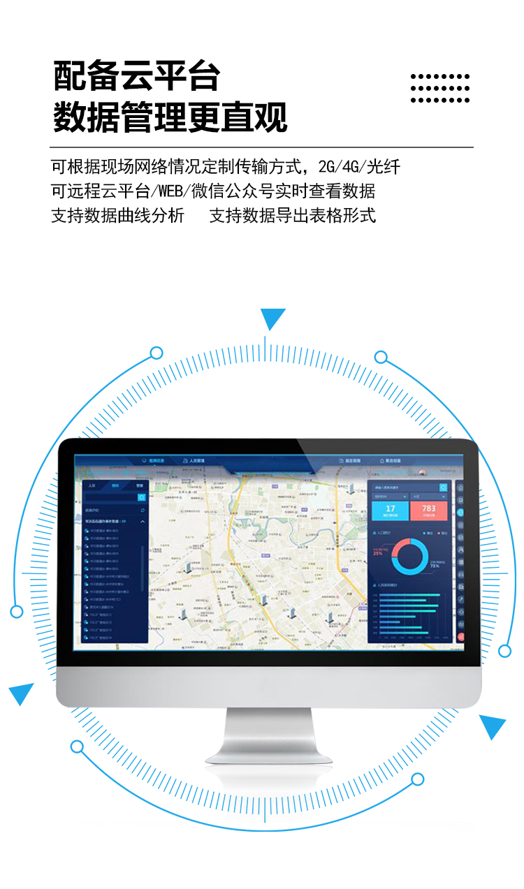 3、多種傳輸:可根據(jù)現(xiàn)場(chǎng)網(wǎng)絡(luò)情況定制傳輸方式,2G/4G/光纖