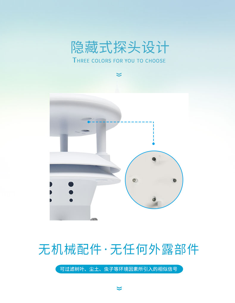 4.免維護(hù),雨滴接觸面為弧形設(shè)計結(jié)構(gòu),不存儲雨水